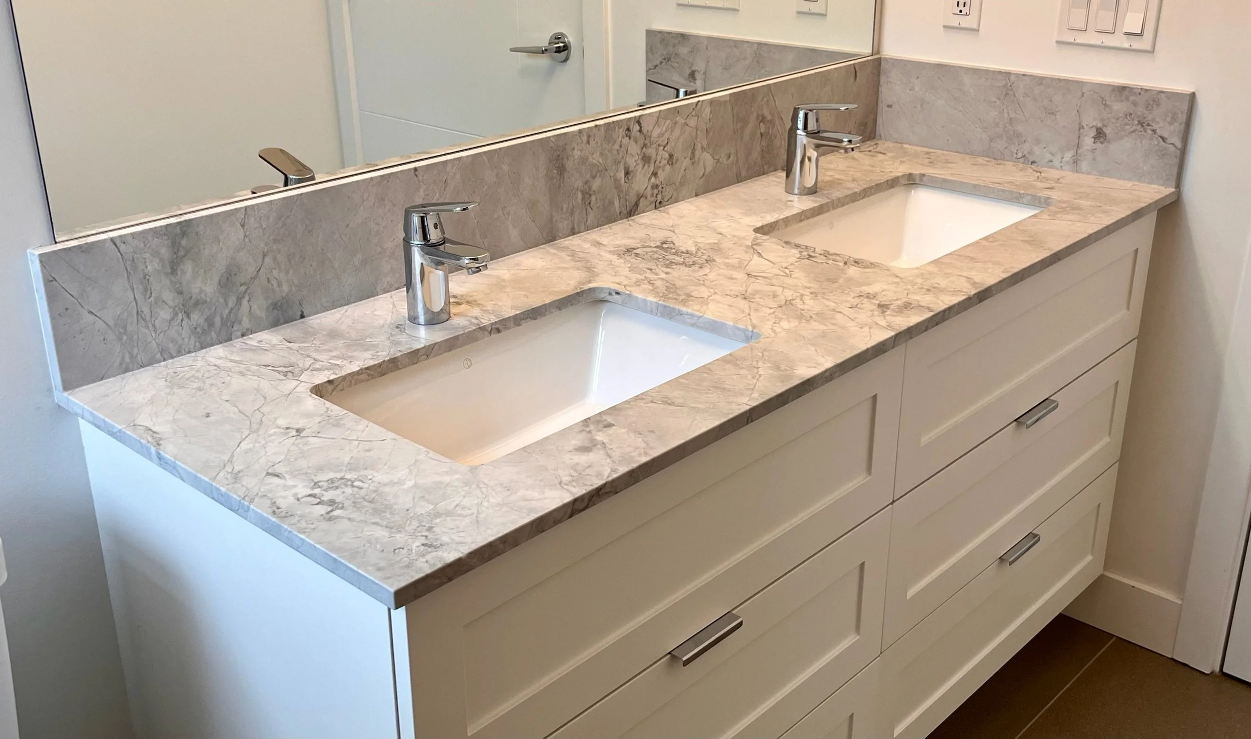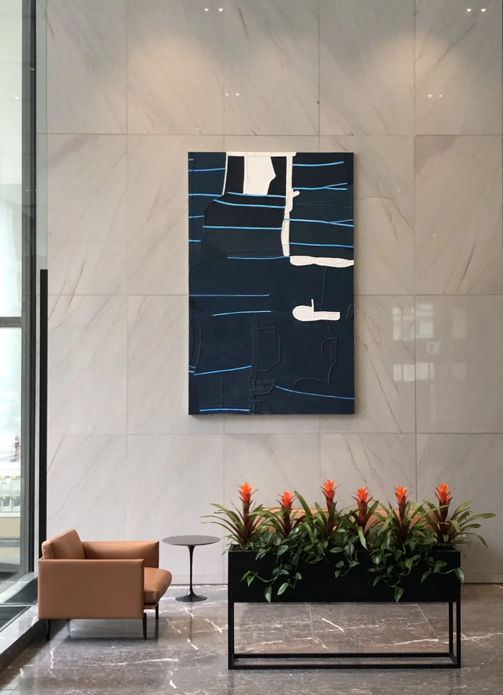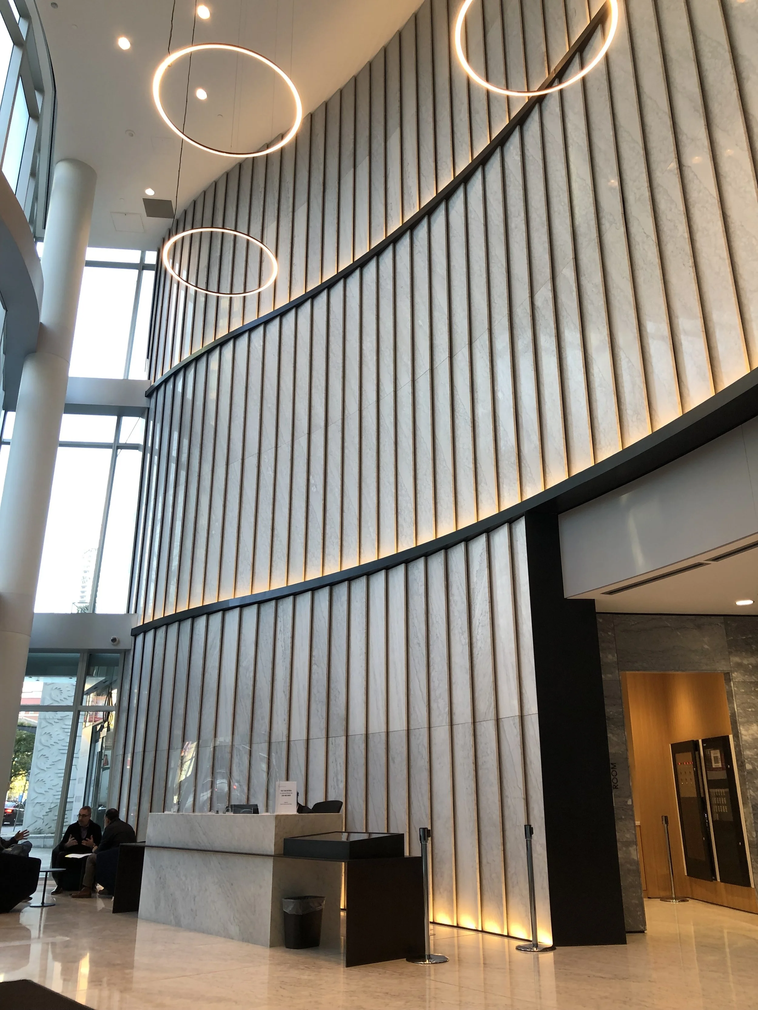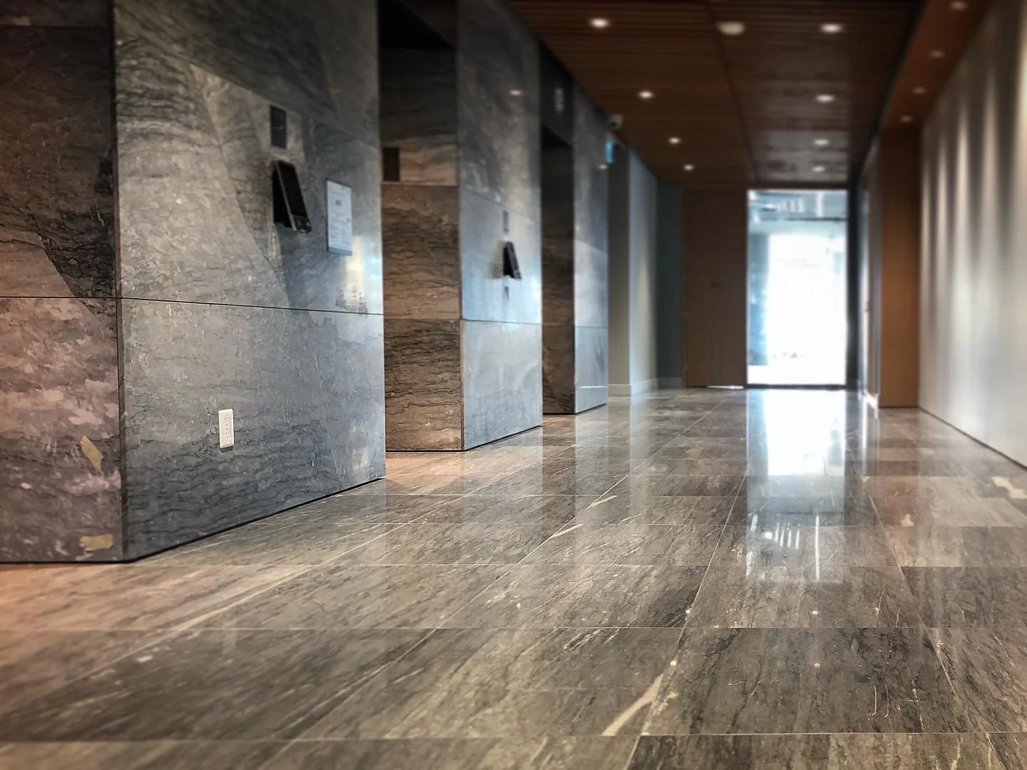 Vancouver Island marble lobby walls & floor. 1280 Burrard.