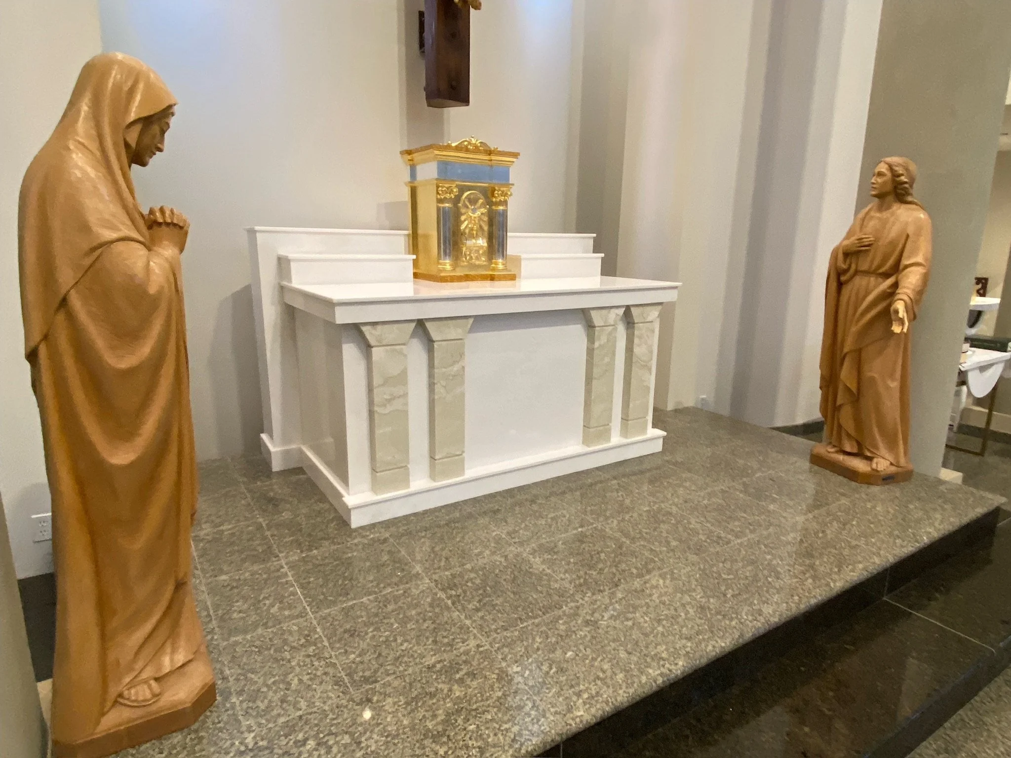 Marble altar on granite tile & steps. St Helen's Church, Burnaby BC.