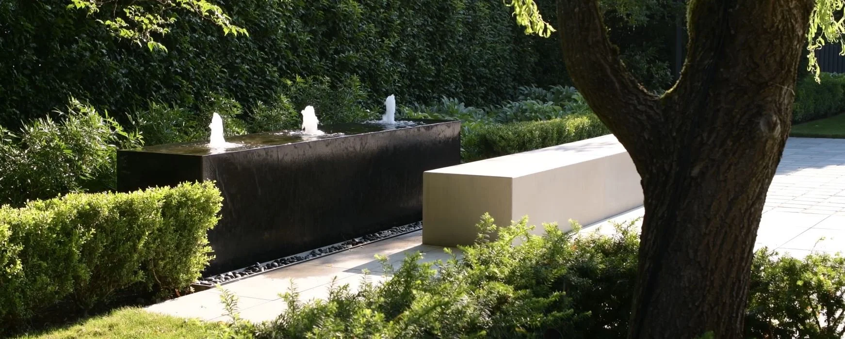 Cambrian Black granite fountain. Designed by Paul Sangha Collective.